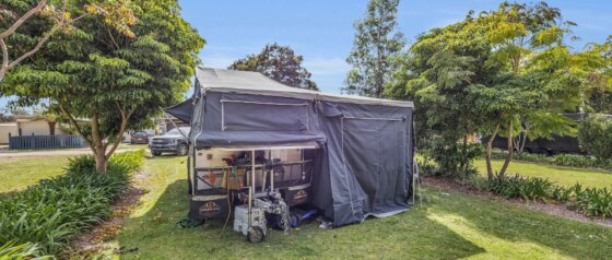 Reconnect with nature on the grassy camping grounds at Kalaru Holiday Village, where wide open spaces and shady trees create a relaxed, authentic camping experience.